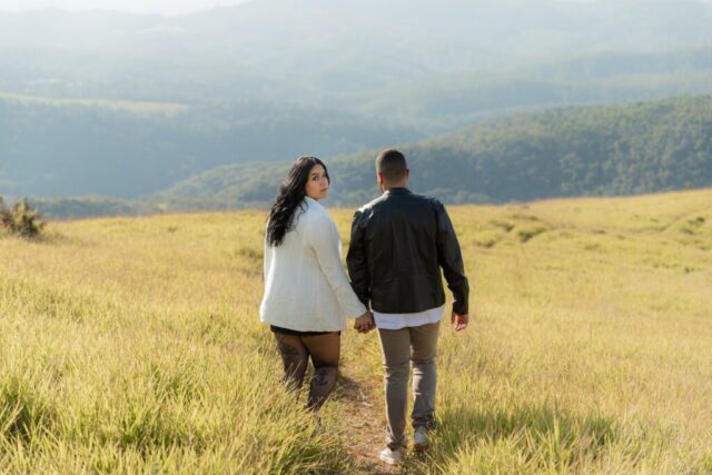 Entre silhuetas apaixonadas contra o sol poente, poses divertidas explorando a paisagem e detalhes da natureza realçados pela luz dourada, cada clique se tornou uma verdadeira obra de arte. O ensaio não apenas registrou imagens, mas também memórias que revelam a essência desse amor.